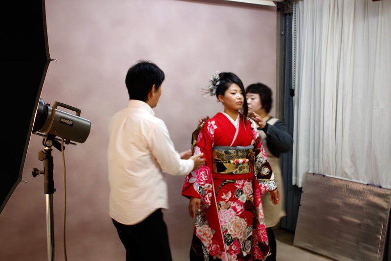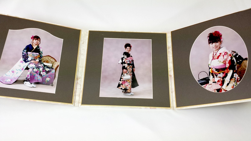 徒歩2分、昔ながらの提携写真館で振り袖姿の前撮り撮影を行います。ハタチの振袖姿を一生の記念に残すアルバムです、店頭に特設のスタジオを作って素人のスタッフが撮るのではなく、やはりプロの手で本物をご用意したいと考えます。決して華やかではありませんが、しっかりした台紙のきちんとしたアルバム。ちょっと緊張しながらのハタチの姿と共に、成人を迎える気持ちをいつまでも忘れない…そんな記念写真にしたいと考えます。
